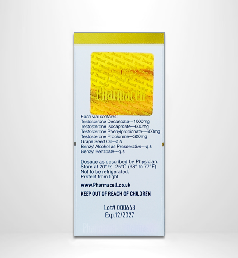 All four compounds are esters of the natural hormone testosterone. The total amount of testosterone per ml is 176 mg.